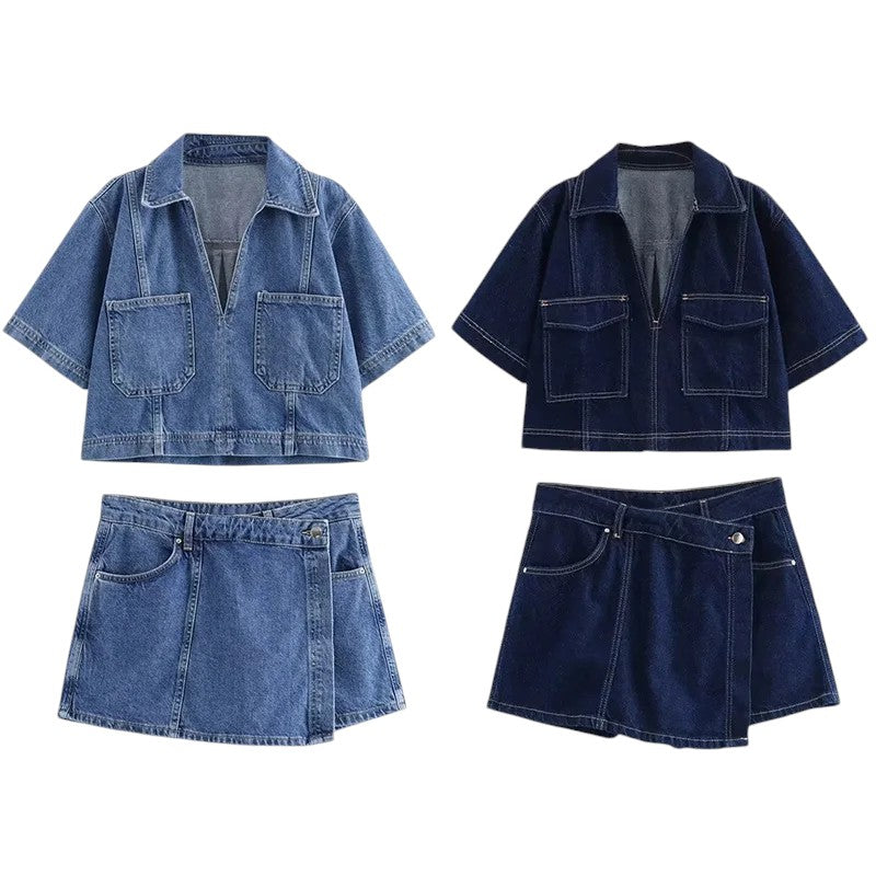 Conjunto Denim Celeste – Camisa Corta y Falda de Mezclilla