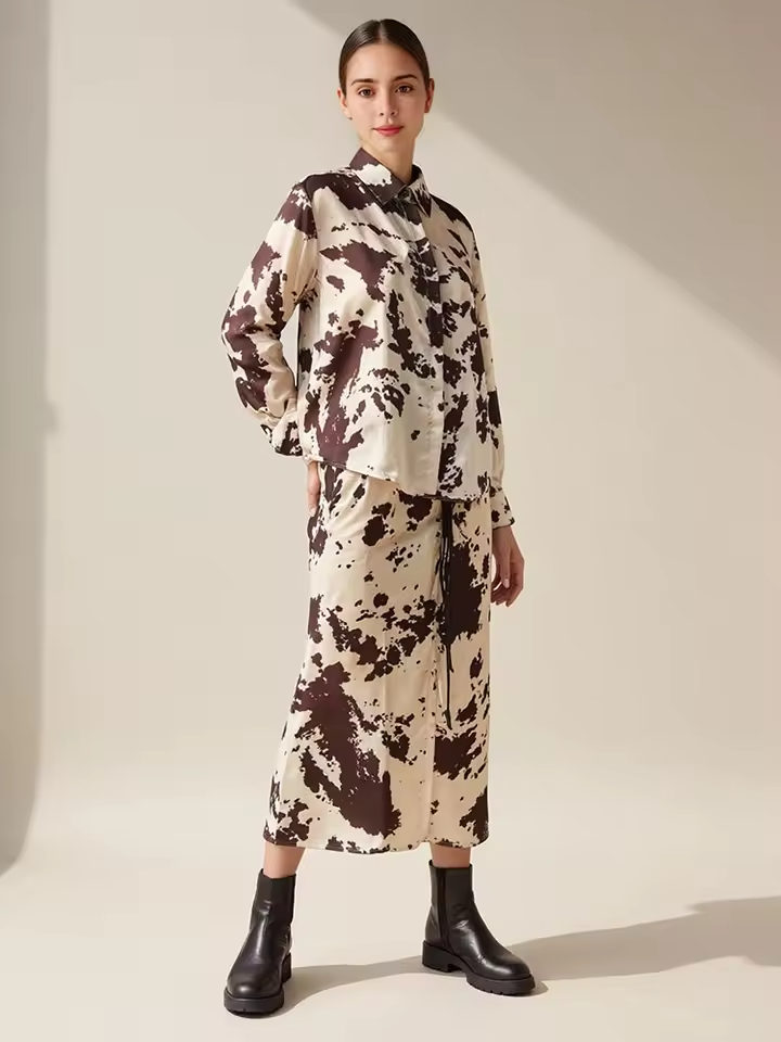 Conjunto estampado de camisa y falda con cinturón – Estilo y frescura para tu verano 2025