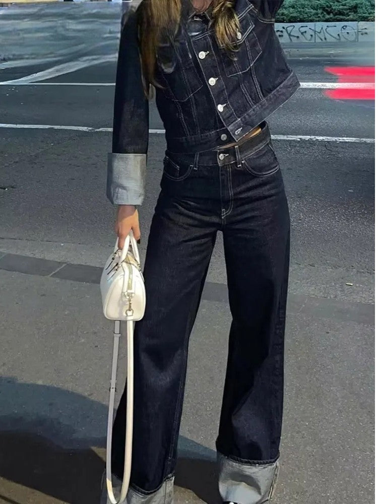 Conjunto Retro Omu – Chaqueta y Pantalón de Mezclilla Vintage para Mujer