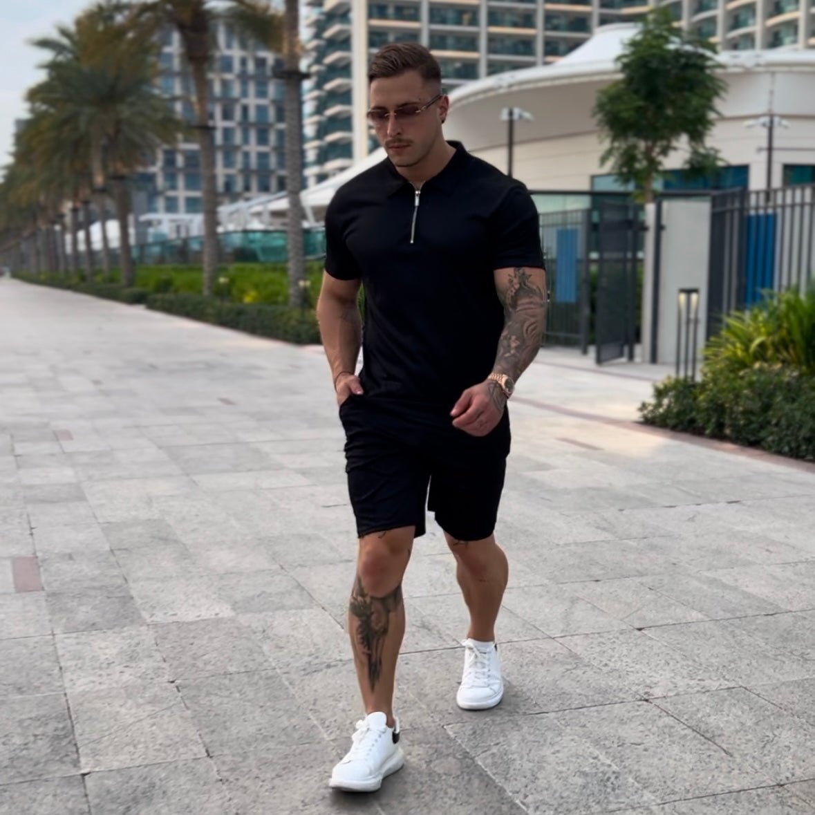 Conjunto Rodrigo -Playera con Cremallera y Pantalones Cortos para Hombre