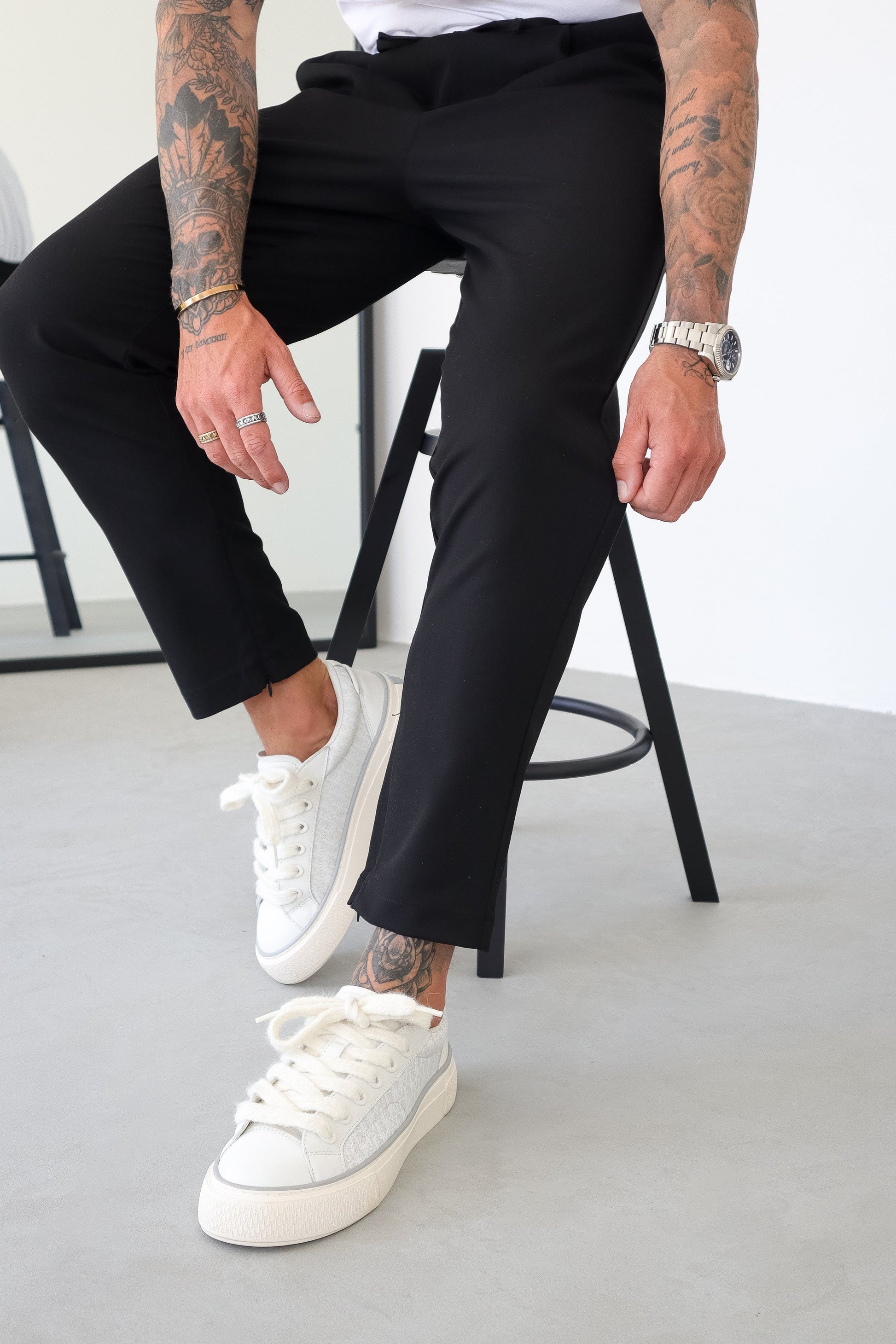 - Diseño Elegante y Contemporáneo: Los Pantalones Elián presentan un corte ajustado y una silueta estilizada que realza cualquier atuendo. Su diseño minimalista y limpio les da un toque sofisticado, adecuado tanto para entornos formales como informales.