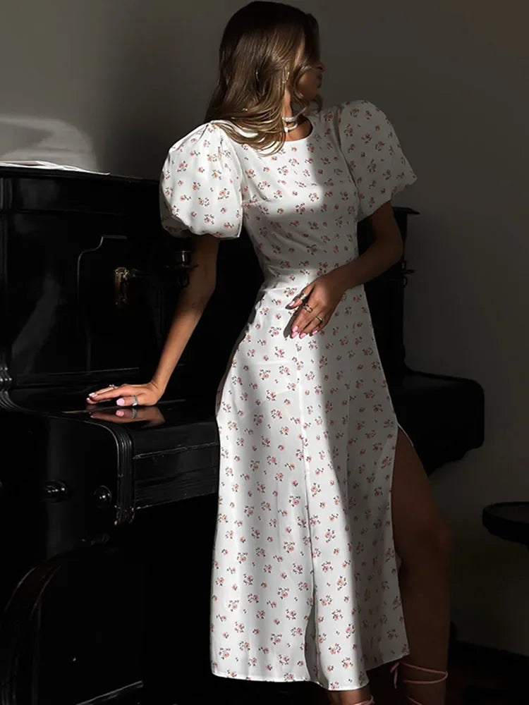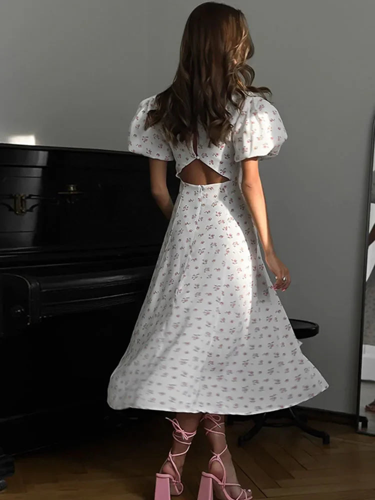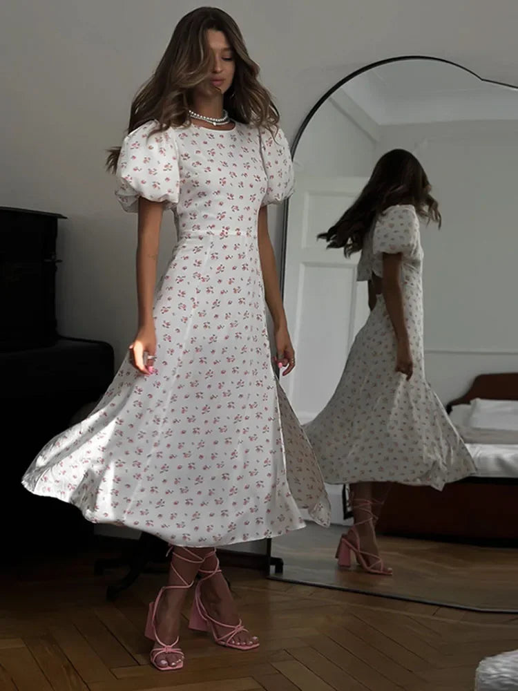 Sumérgete en el encanto del verano con nuestro Vestido Hazel, diseñado para la mujer que aprecia la combinación perfecta entre estilo informal y elegancia refinada. Este vestido presenta un cuello redondo, mangas abombadas y una espalda descubierta que añade un toque de sensualidad sutil.