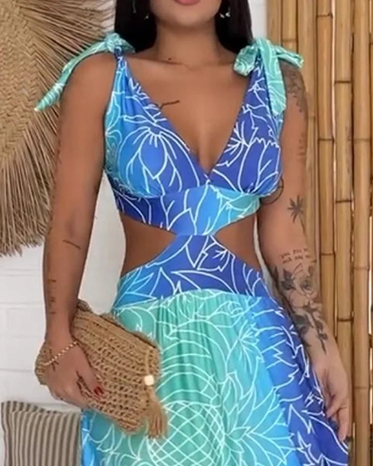 Vestido sin mangas con cintura estampada y líneas